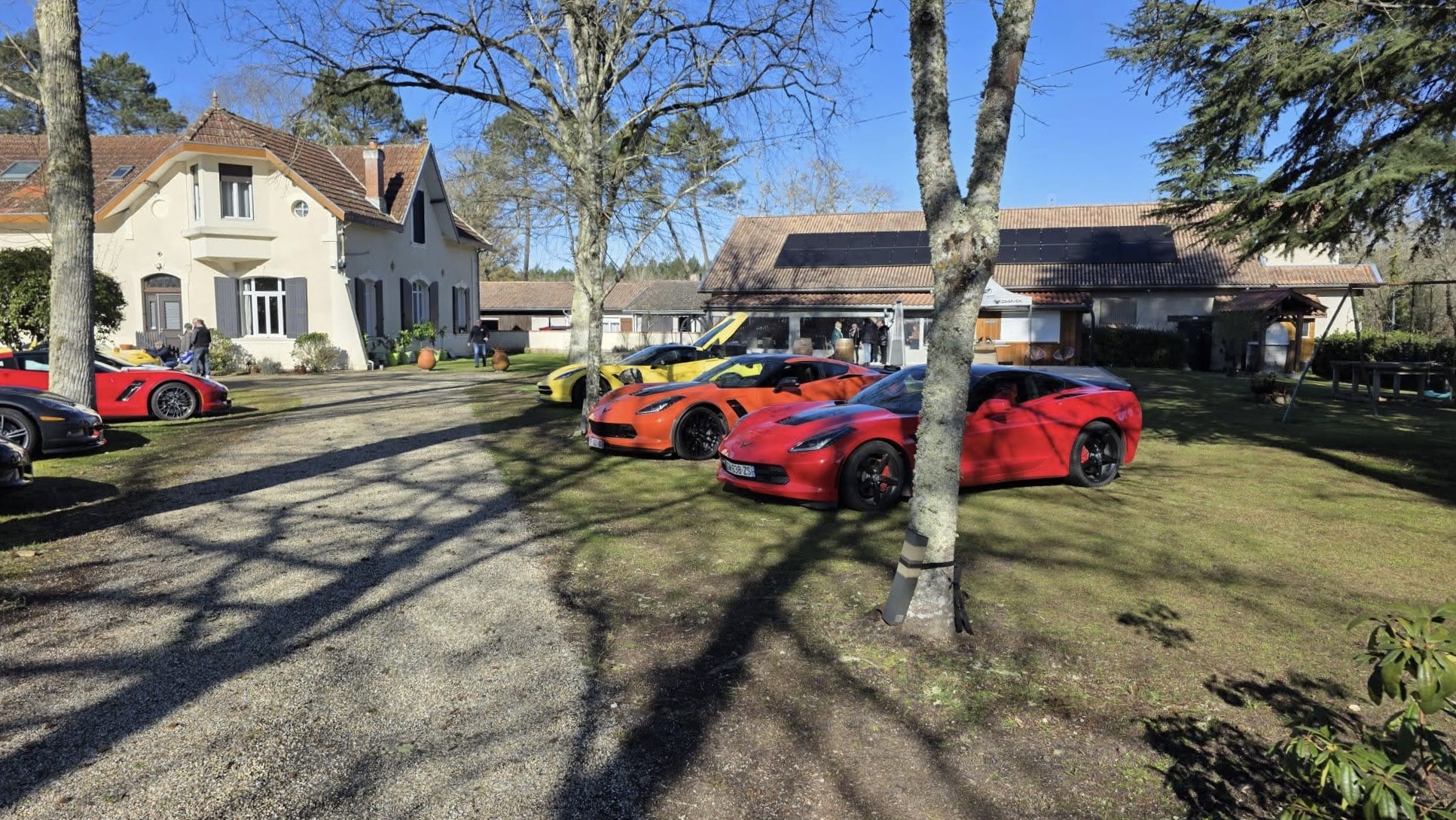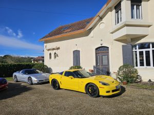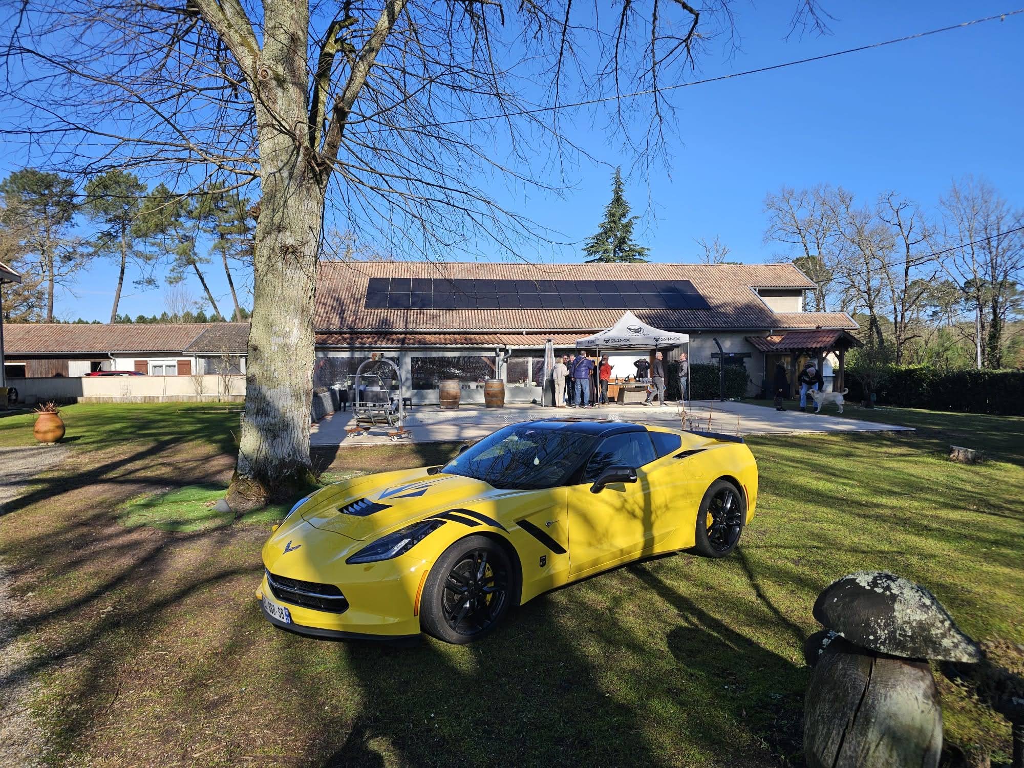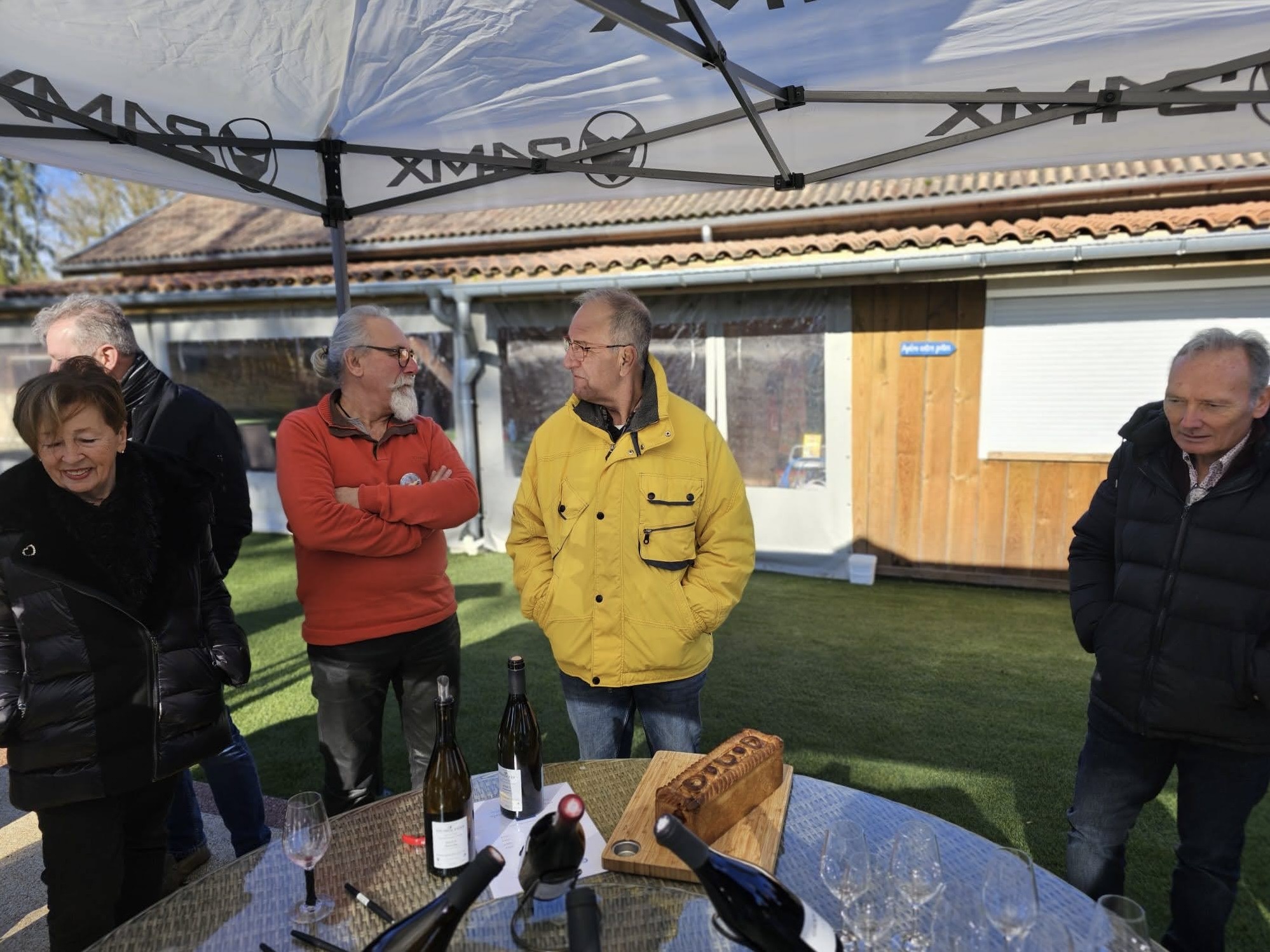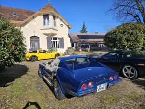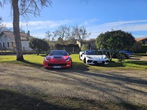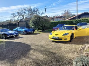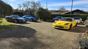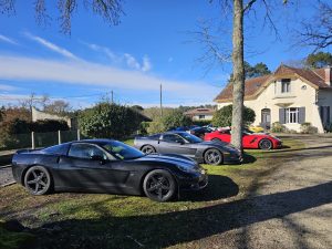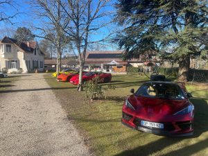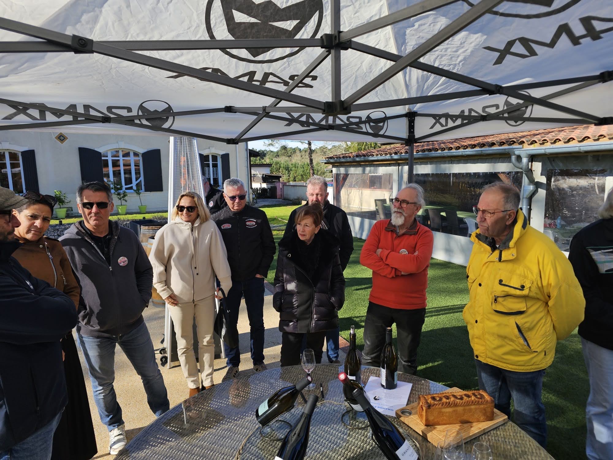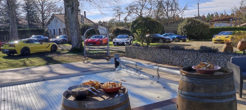 Jardin nikel pour pouvoir garer nos belles (petit clin d’oeil à Jean-Jacques), bel endroit organisé pour que Christian puisse nous présenter ses vins!