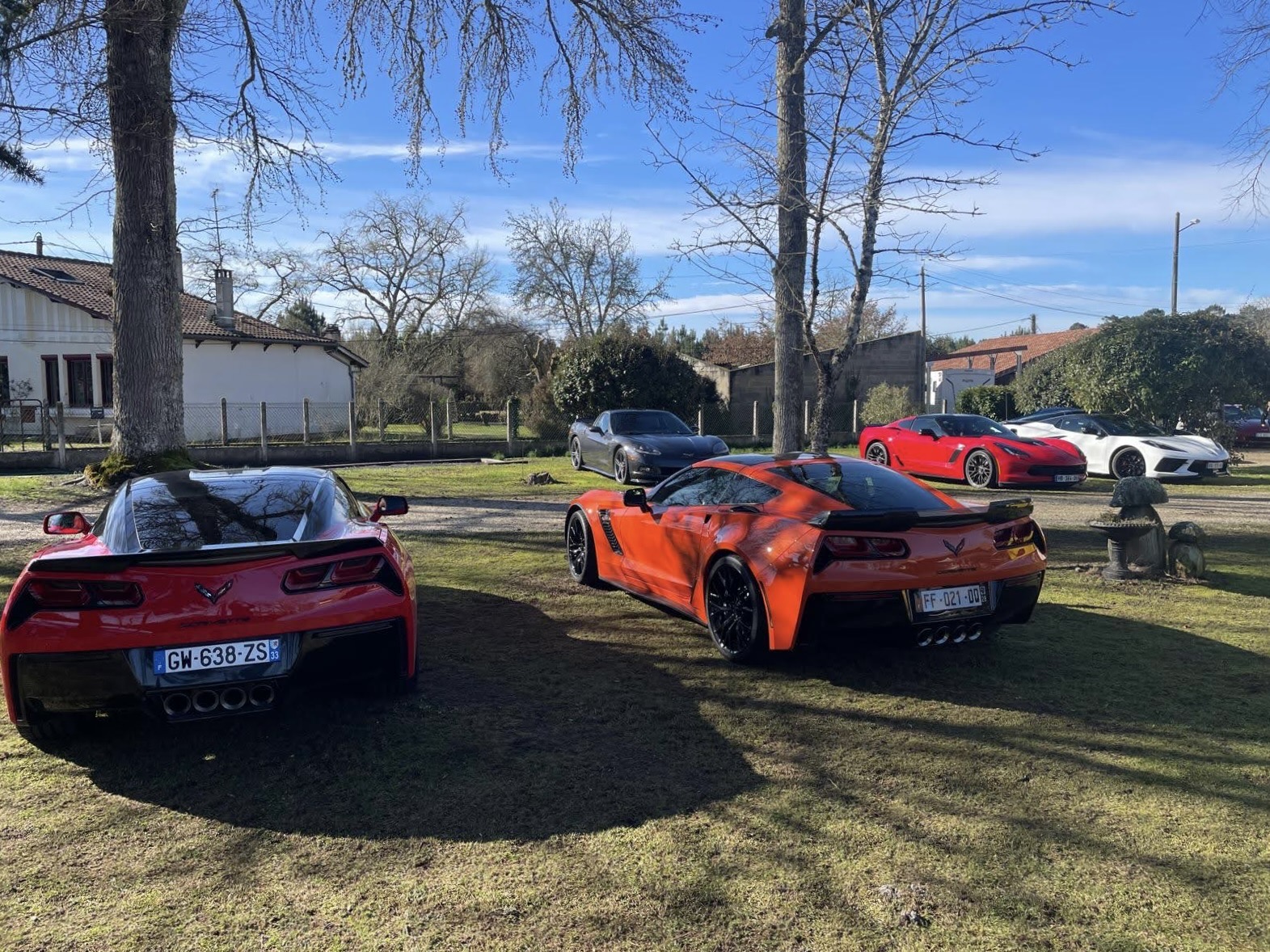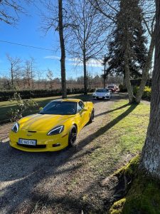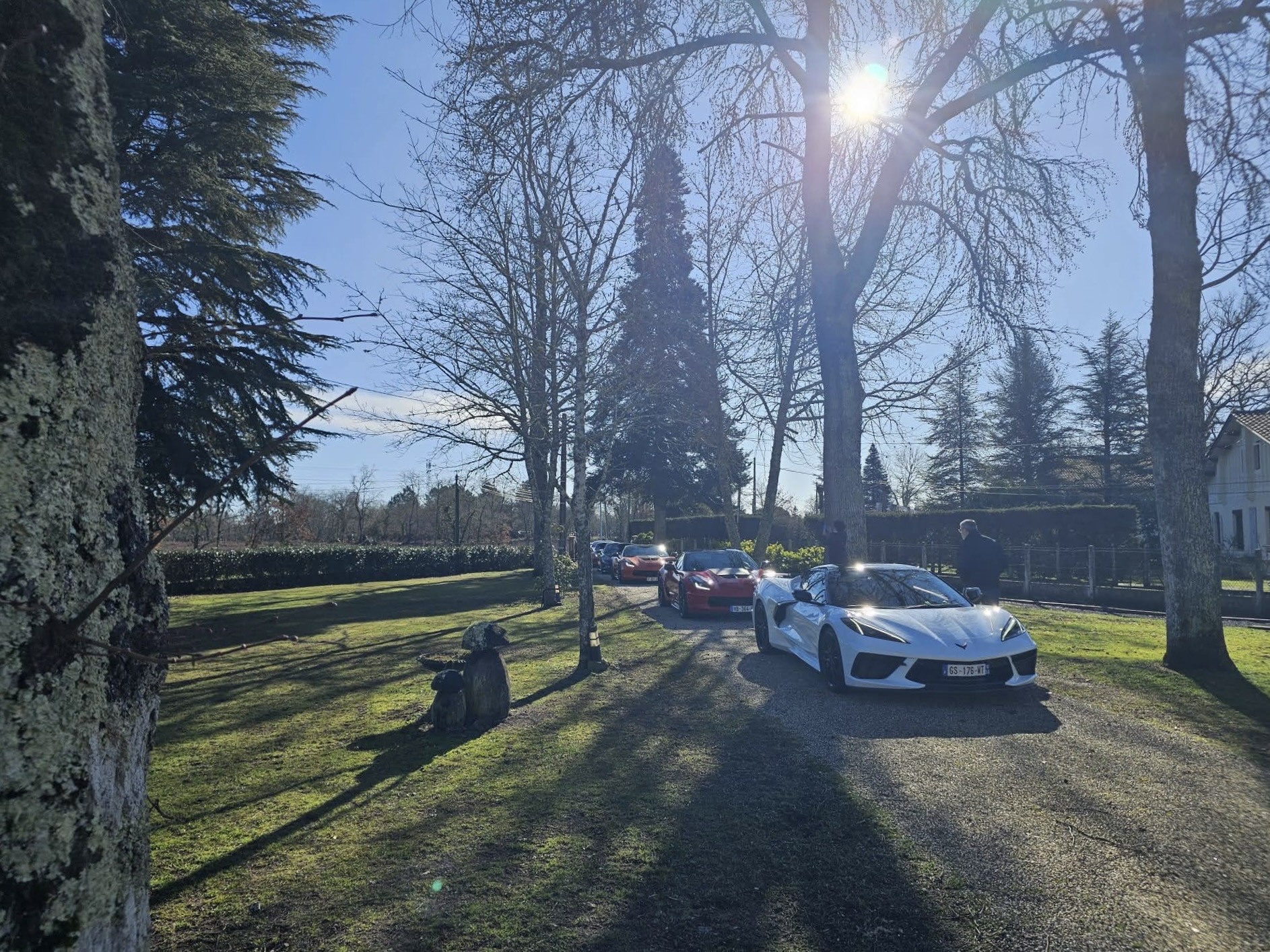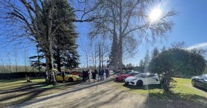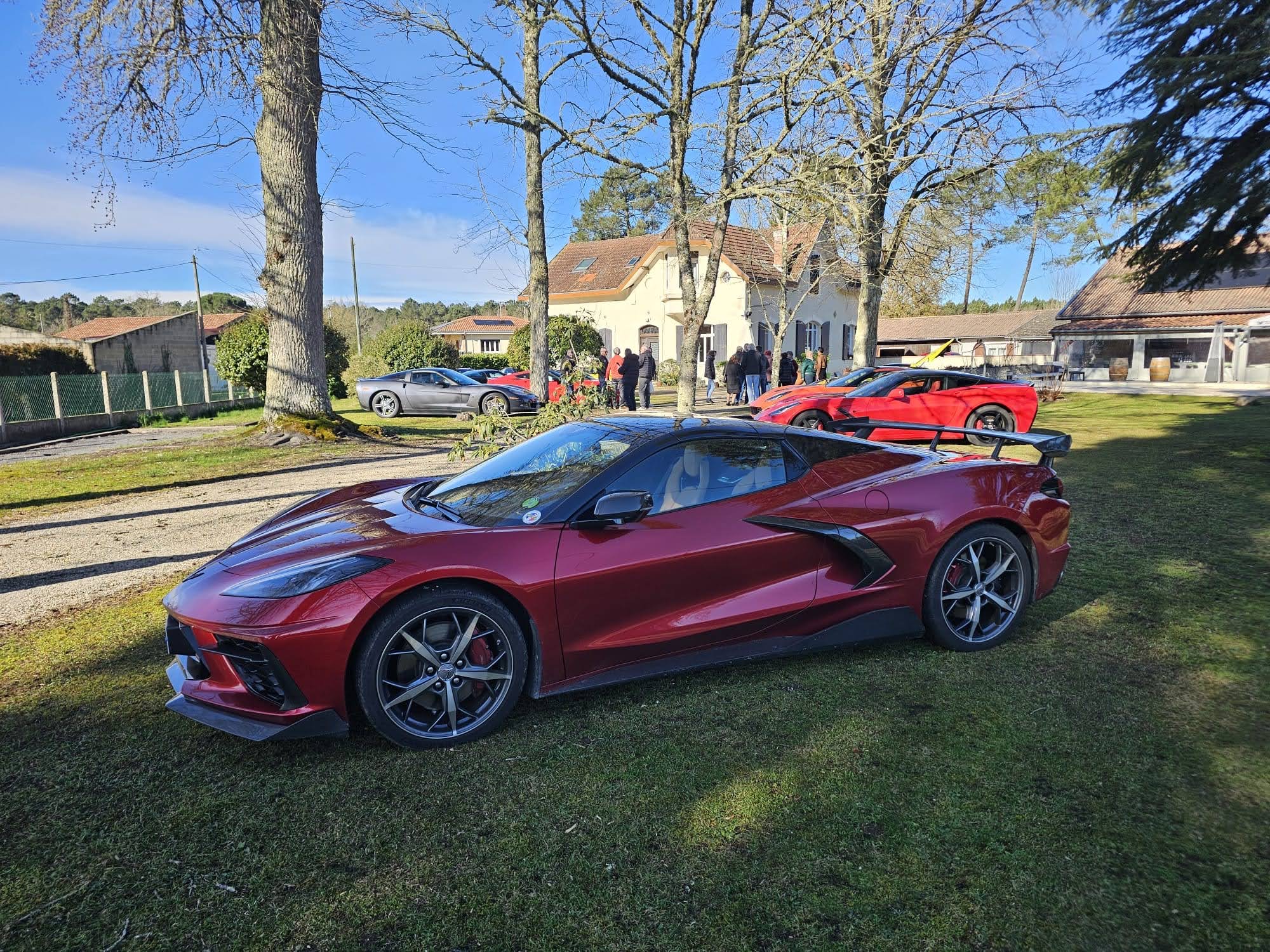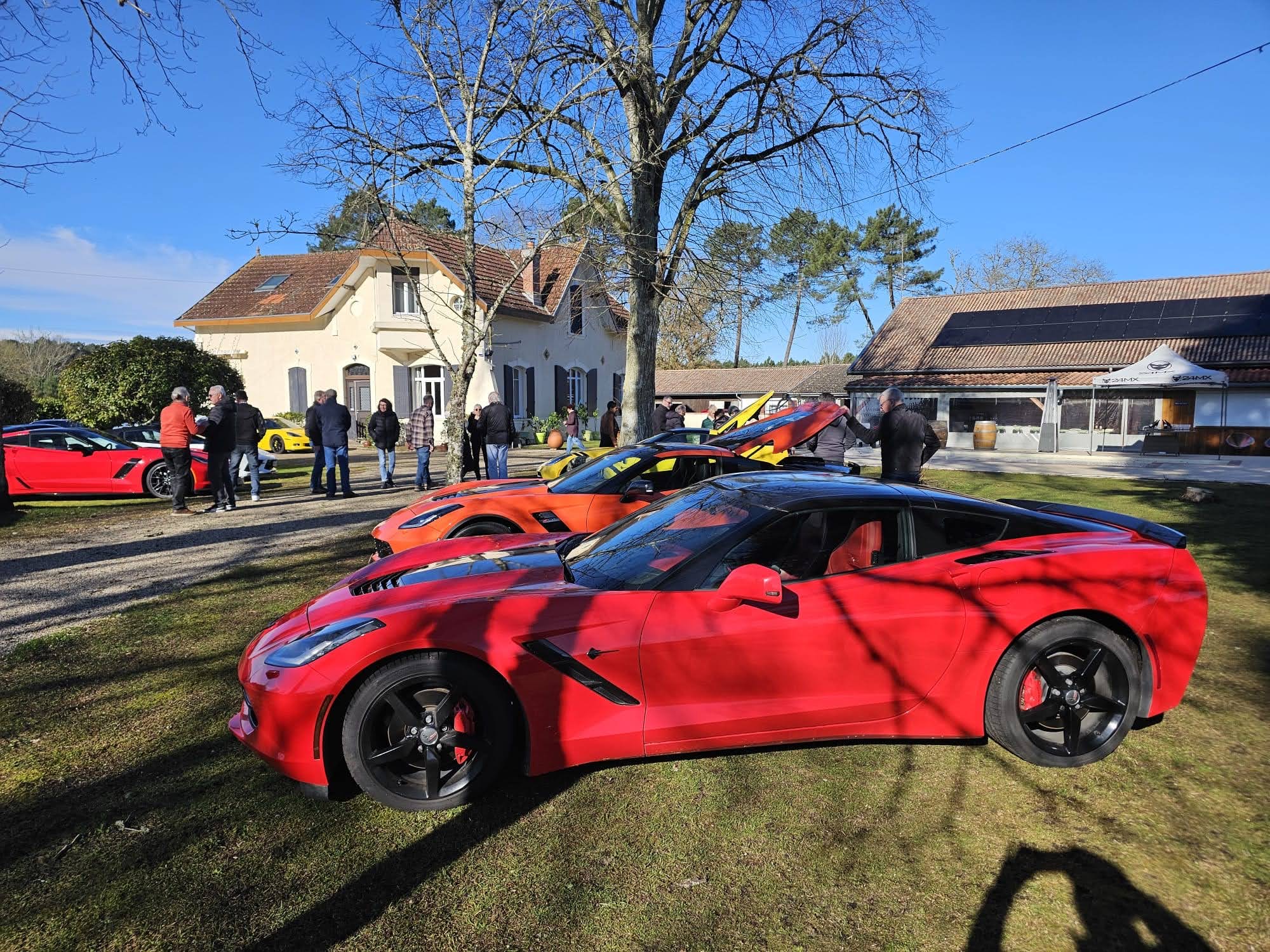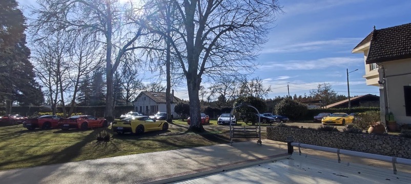 Jardin nikel pour pouvoir garer nos belles (petit clin d’oeil à Jean-Jacques), bel endroit organisé pour que Christian puisse nous présenter ses vins!